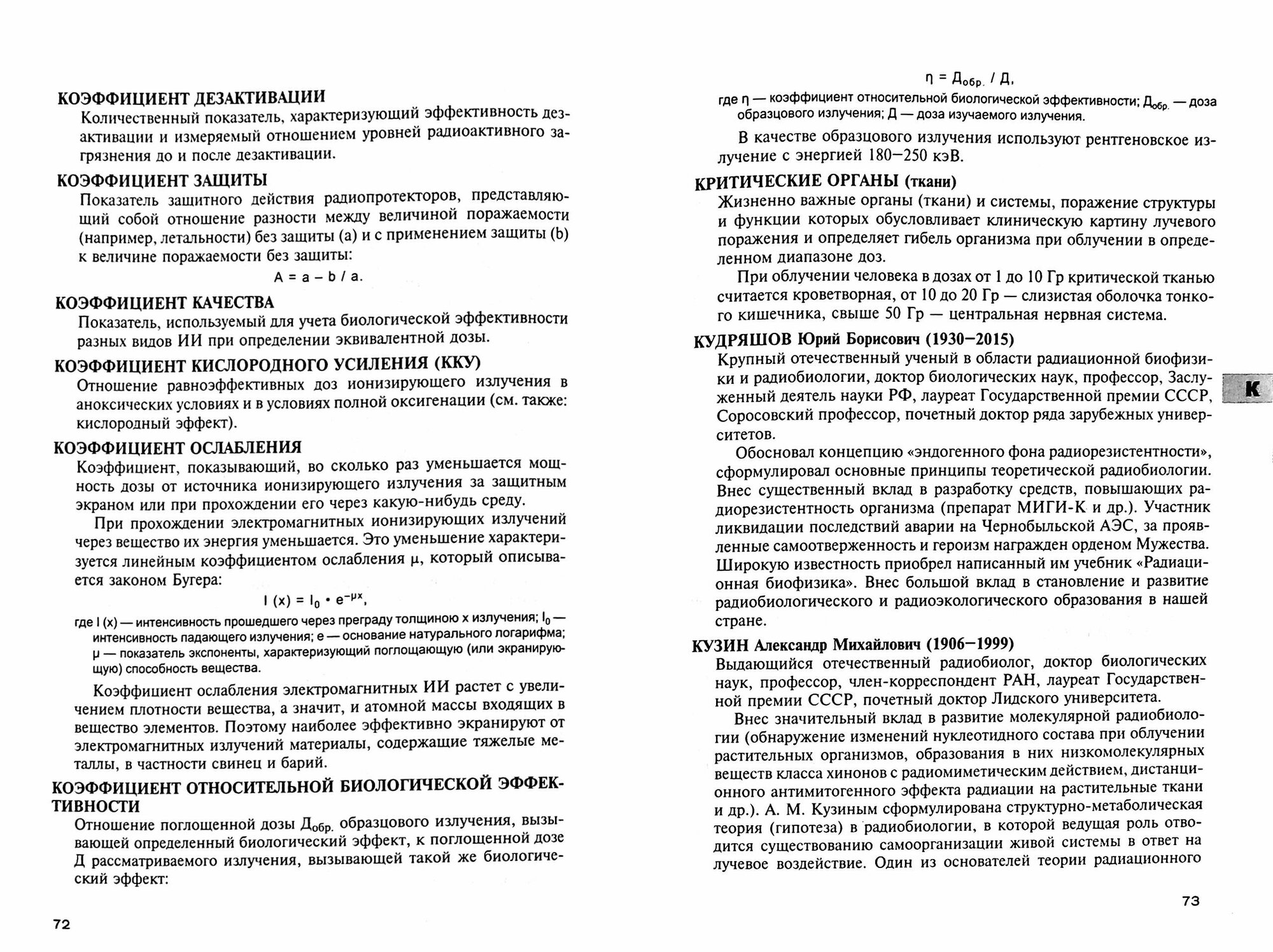 В словаре-справочнике представлены авторские определения терминов и понятий, которые наиболее широко используются в радиобиологии, радиационной физиологии и медицине. Словарь поможет получить представление об основных понятиях радиационной биофизики и биохимии, молекулярной и клеточной радиобиологии, о механизмах действия ионизирующих излучений на критические ткани и органы, о биологических эффектах различных доз радиации на всех уровнях организации биосистем (от действия на молекулы до эффектов в отношении целостного организма). Значительное внимание уделено описанию клинических форм радиационных поражений, средств их медикаментозной профилактики и лечения, а также терминов, использующихся в обеспечении радиационной безопасности.