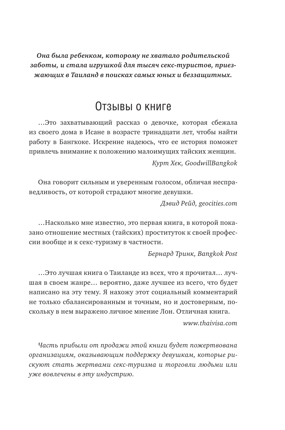 Мать отправила меня в Бангкок, когда мне было всего 13. Я должна была заработать денег, чтобы вытащить семью из нищеты. В 14 я продала свою девственность, и начала торговать телом. Меня зовут Лон. И это моя история.