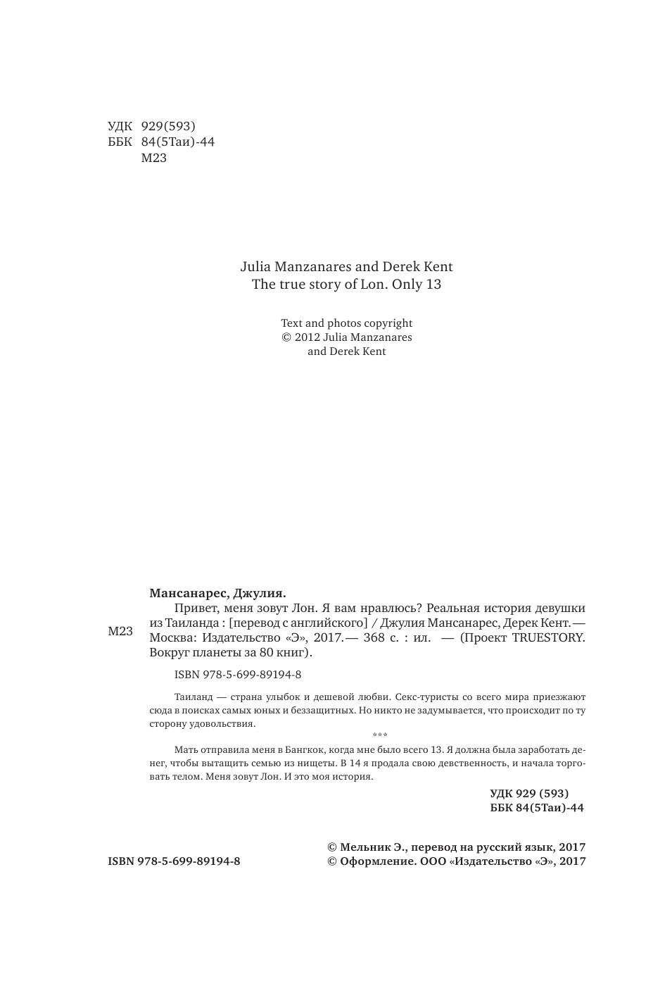 Привет меня зовут Лон. Я вам нравлюсь? Реальная история девушки из Таиланда (Джулия Мансанарес, Дерек Кент); Эксмо, 2017