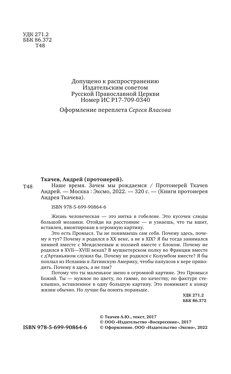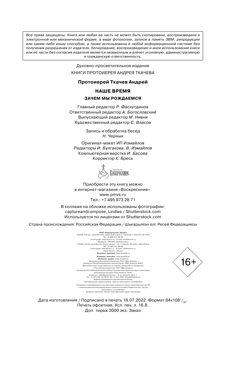 Наше время. Зачем рождаются люди (Протоиерей Андрей Ткачев); Эксмо, 2022