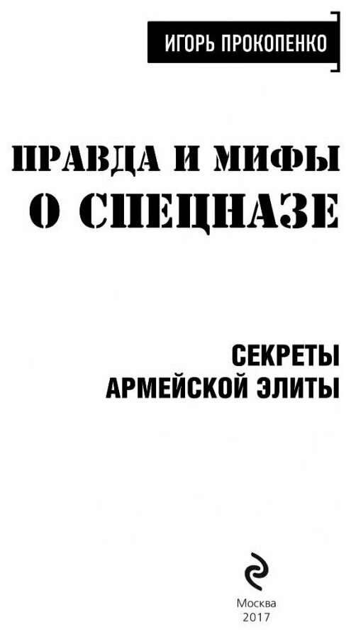 Книга: Правда и мифы о спецназе (Игорь Станиславович Прокопенко); Эксмо, 2017