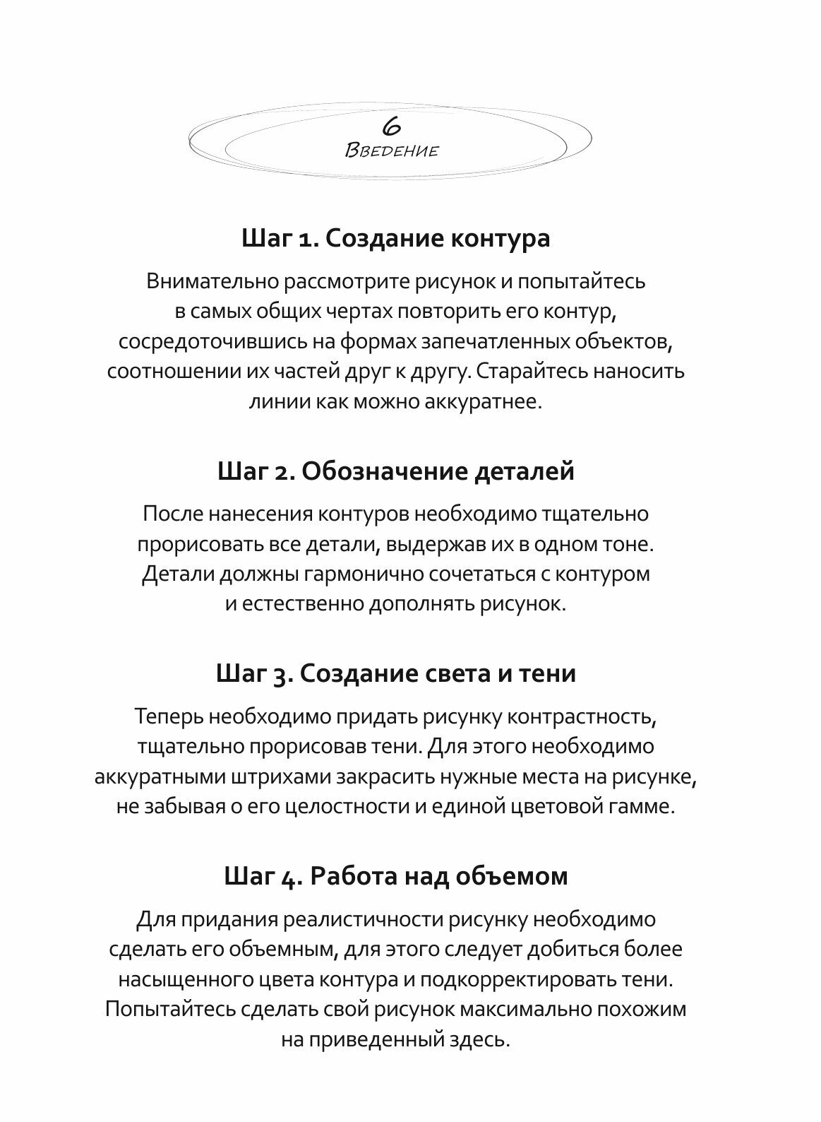 Хороший, обучающий рисунку, блокнот (книга) в твёрдом переплёте. В начале блокнота представлена краткая ознакомительная информация касательно материалов и основных формулировок. В нём продемонстрирована поэтапная техника исполнения рисунка. Удобный формат. Блокнот практичный в использование. Можно брать с собой.