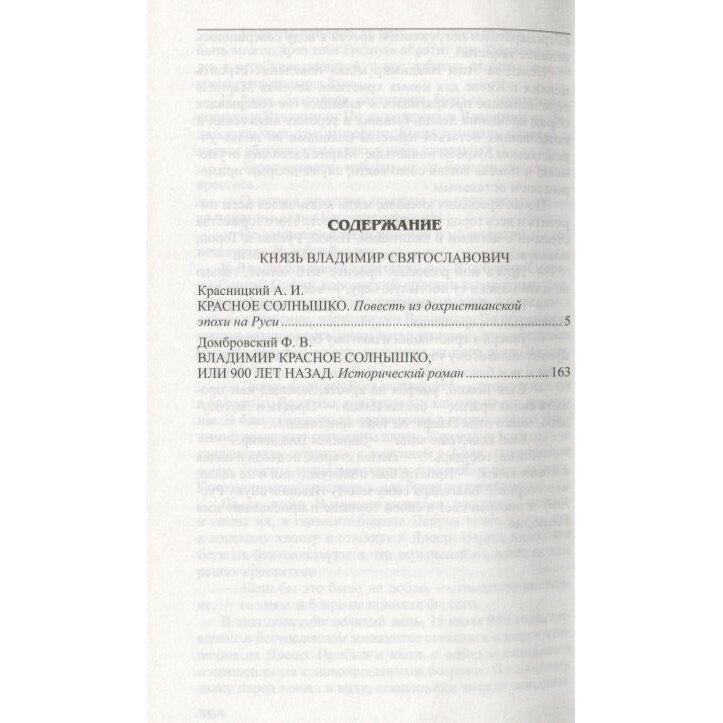 В сборник включены романы А.Красницкого "Красно Солнышко" и Ф.Домбровского "Князь Владимир или 900 лет назад".В 988 году произошло Крещение Руси. Этим исторически значимым событием наша страна обязана князю Владимиру Святославовичу. "Сей князь, названный Церковью Равноапостольным, заслужил в истории имя Великого", - писал о нем Николай Михайлович Карамзин, а народ величал его не иначе как Владимир Красно Солнышко. Вся его жизнь - клубок противоречий.