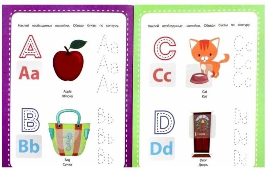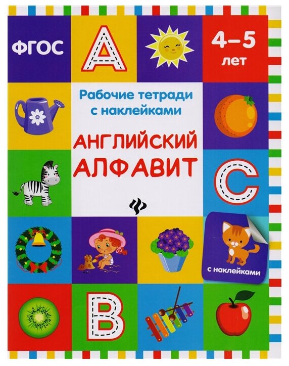 Эта книжка с занимательными заданиями предназначена для развития детей 4-5 лет. Занимаясь по этой книжке, вы сможете в доступной и занимательной форме познакомить малыша с английским алфавитом. Также развить внимание, восприятие и мышление ребенка. Объясните малышу, как нужно выполнять каждое задание. Помогите найти необходимую наклейку, покажите, куда ее нужно наклеить. Для выполнения некоторых заданий малышу потребуется карандаш.