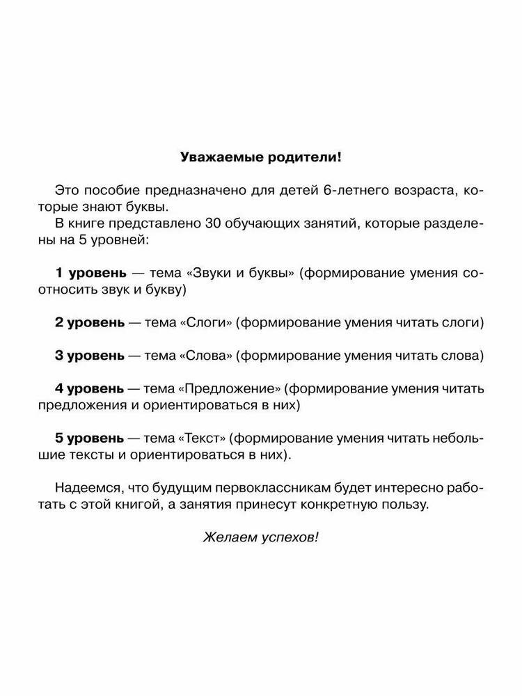 Пособие предназначено дошкольникам, которые уже знают буквы. 30 обучающих занятий разделены на 5 уровней.
