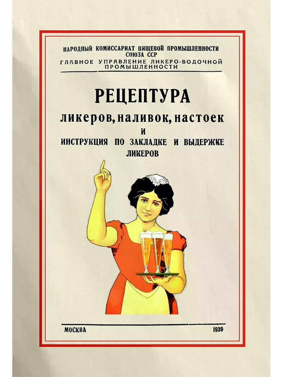 Репринт с издания. Москва, 1939. Рецептура ликеров, наливок и инструкция по закладке и выдержке ликеров. Народный комиссариат пищевой промышленности СССР, главное управление ликероводочной промышленности. Главное управление ликеро-водочной промышленности. Промышленные рецепты. 80 подробнейших рецептов, ингредиенты, технология изготовления. Стандарты СССР. Тираж 30 экз.