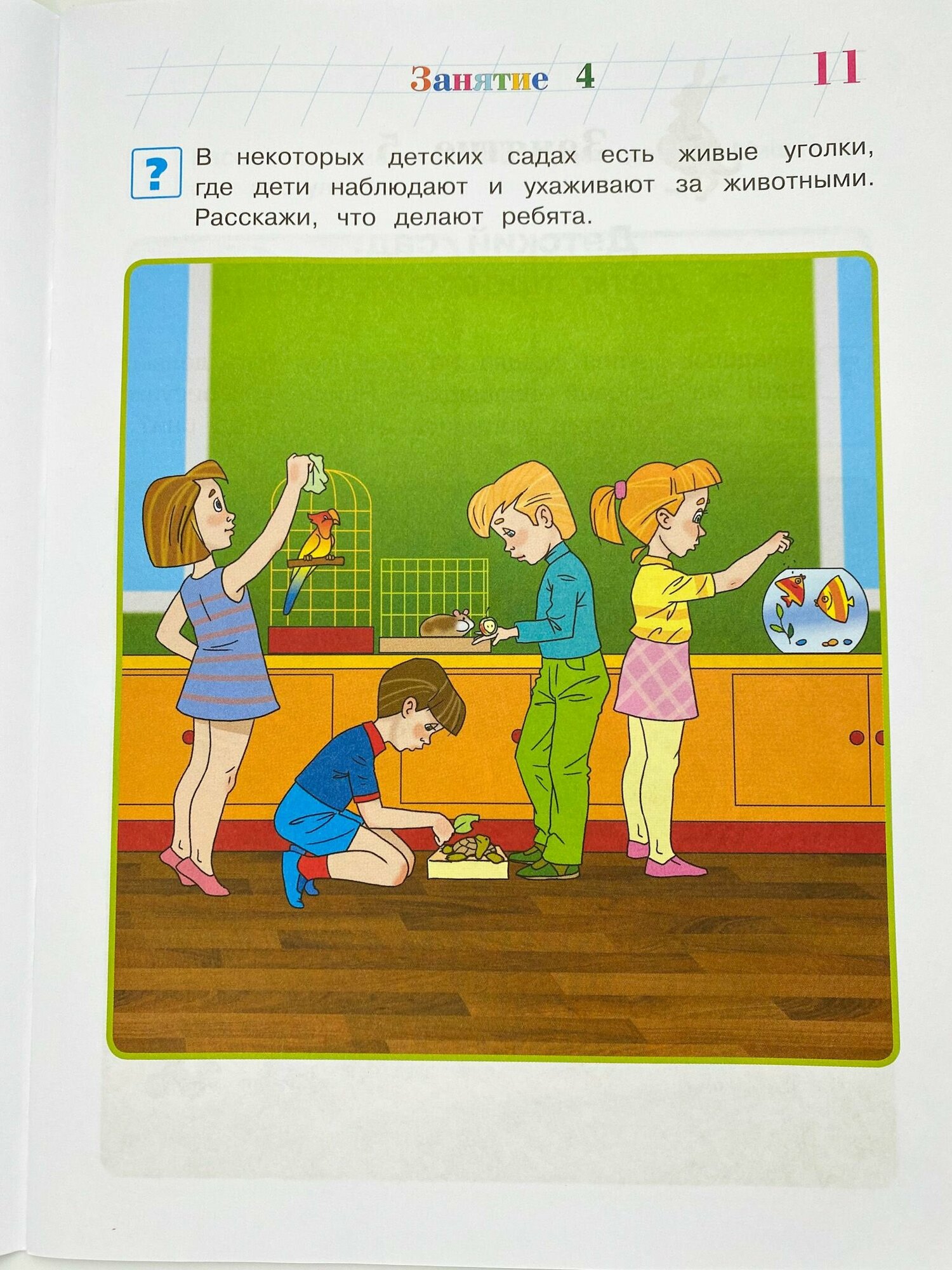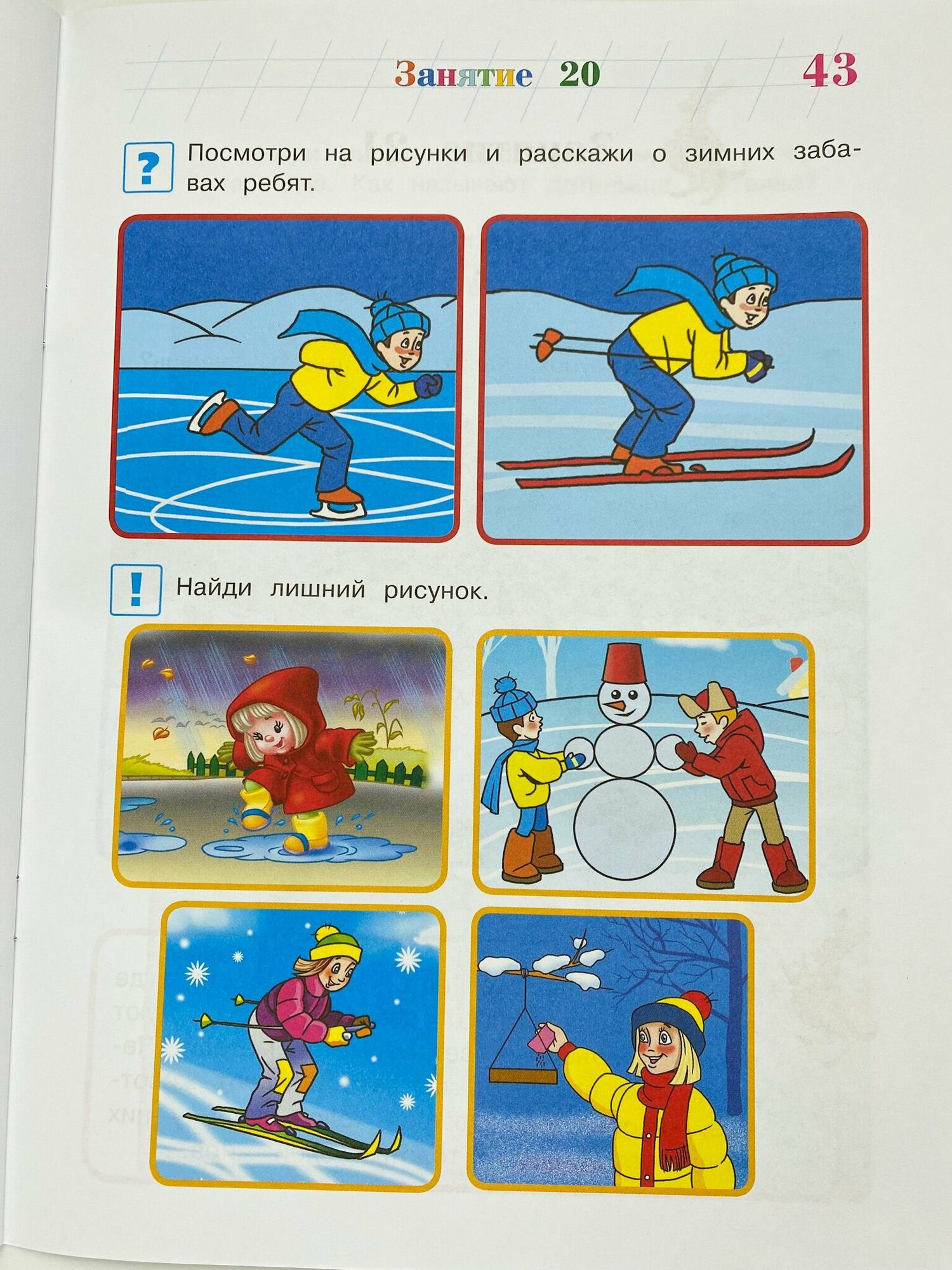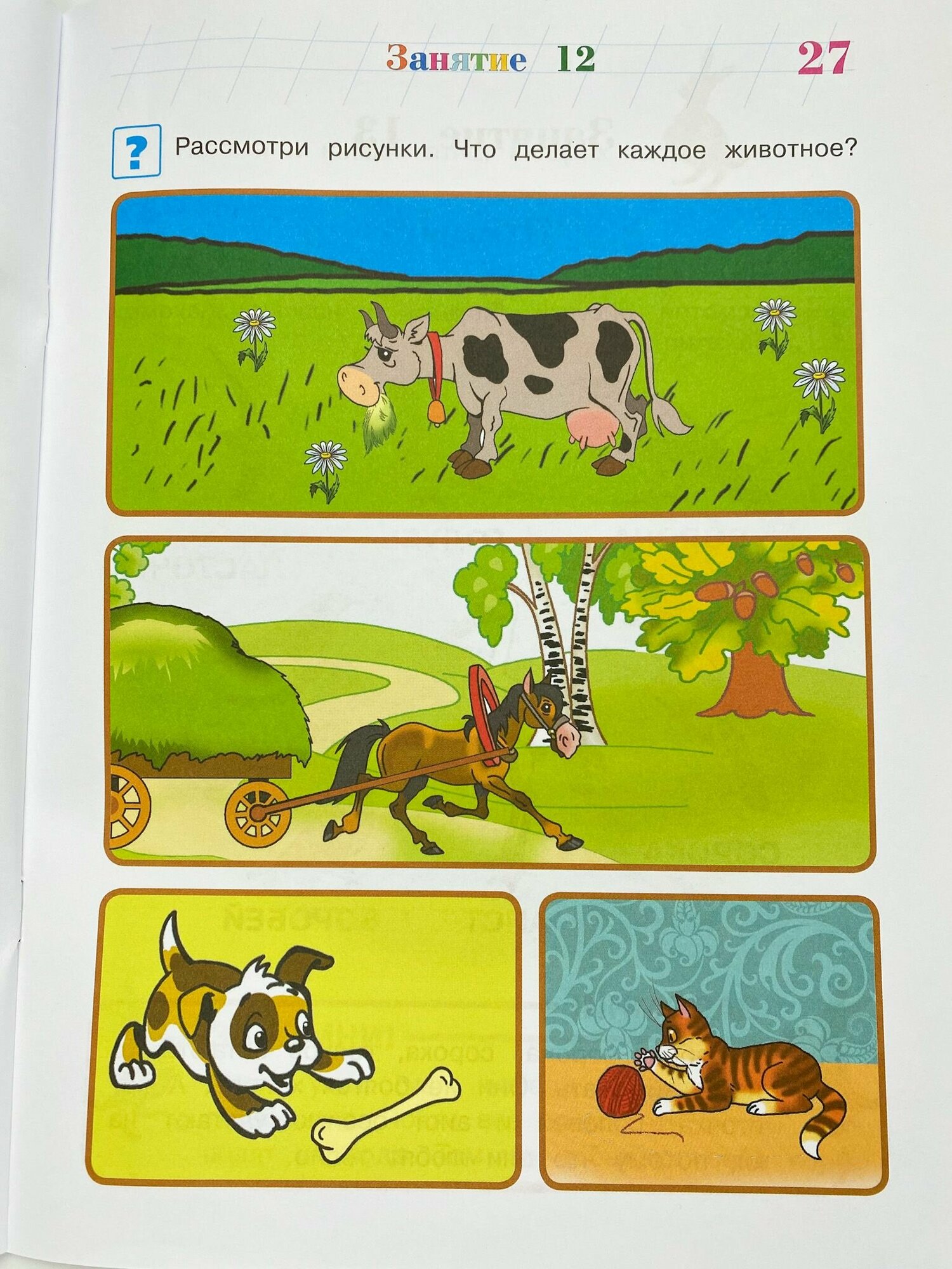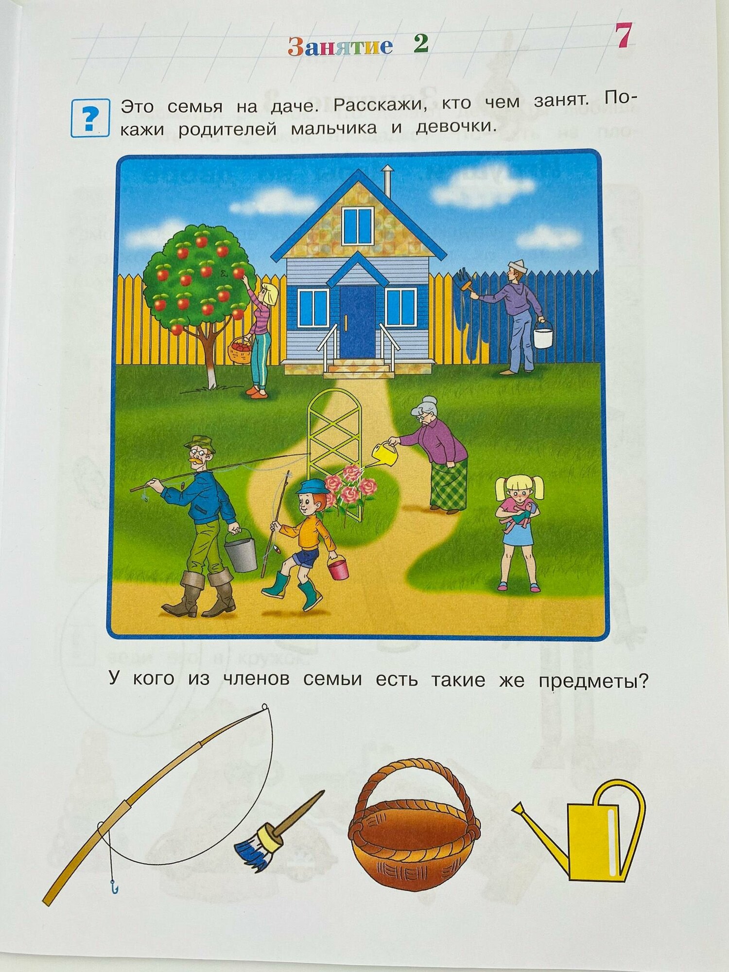 Ребенку 3 года. Задания выполняет удовольствием, все объяснено доступно и понятно. Картинки четкие и понятные, задания как раз по возрасту. Есть задания раскрасить, обвести лишнее, соединить линиями, места для выполнения заданий вполне достаточно. Есть задания на внимание, помогающие делать обобщения, объединять предметы в группы.