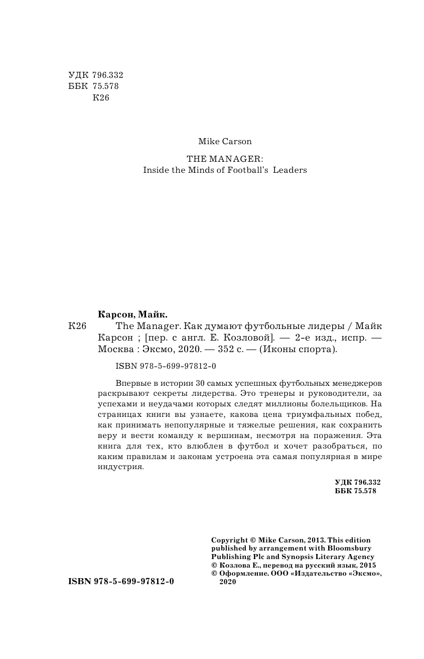 The Manager. Как думают футбольные лидеры (Майк Карсон); Эксмо, 2020