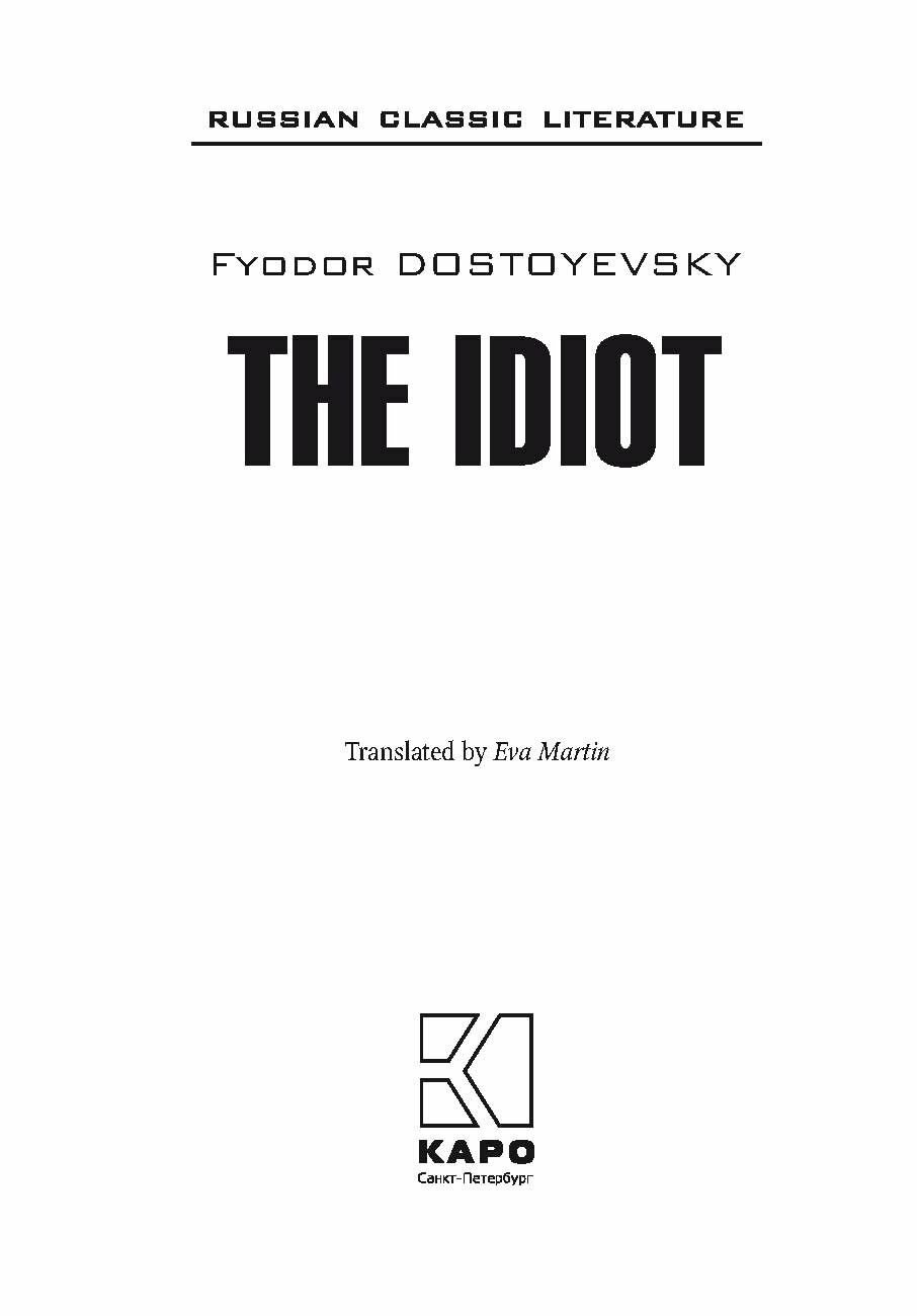 Предлагаем вниманию англоязычного читателя один из самых известных романов великого русского писателя Ф.М. Достоевского (1821-1881) "Идиот" в переводе Евы Мартин.