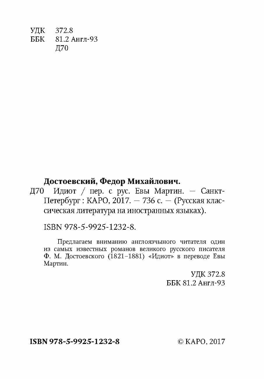 Книга: The idiot / Идиот (Федор Достоевский); КАРО, 2017