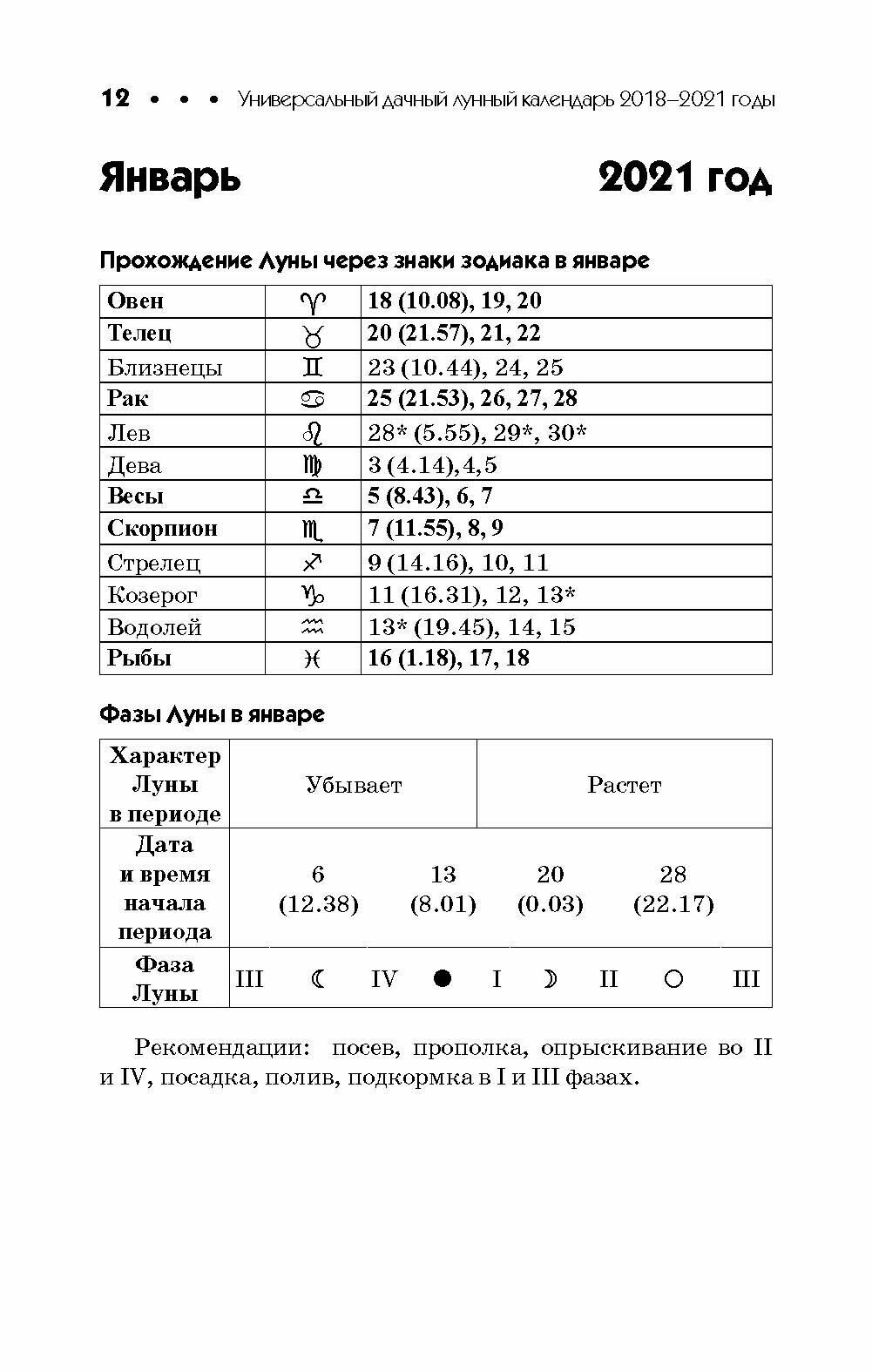 А для тех, кто привык ориентироваться на фазы Луны и знаки Зодиака, в книге приводится лунный календарь на четыре года - с 2018 до 2021.