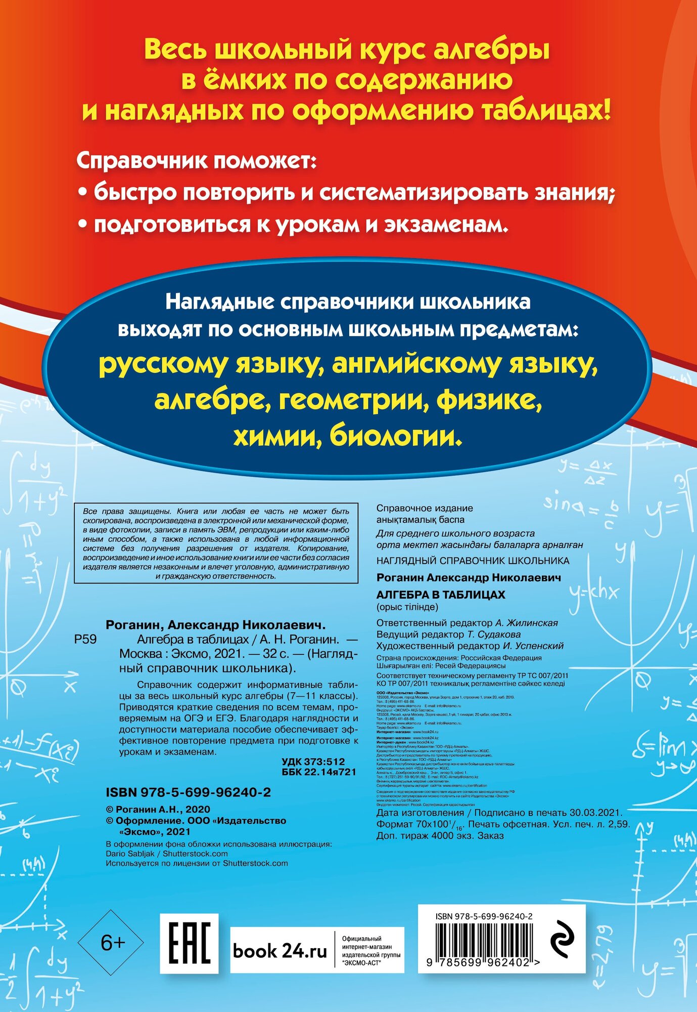 Книга: Алгебра в таблицах (Роганин Александр Николаевич); ООО "Издательство "Эксмо", 2020