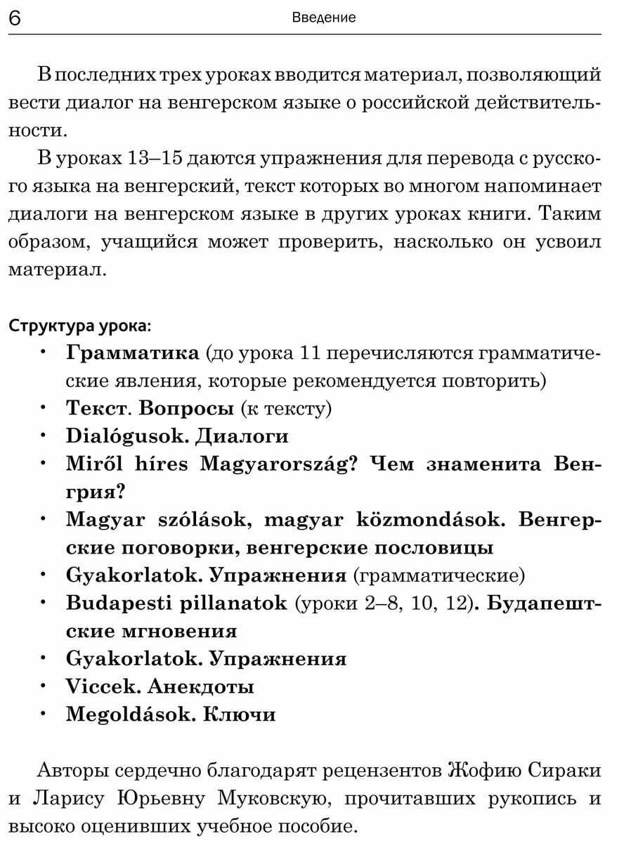 Пособие адресовано как самостоятельно обучающимся венгерскому языку, так и тем, кто изучает язык под руководством преподавателя. Учащиеся, которые только начали осваивать базовый курс венгерского языка, могут использовать книгу параллельно с основным учебником как дополнительное пособие.