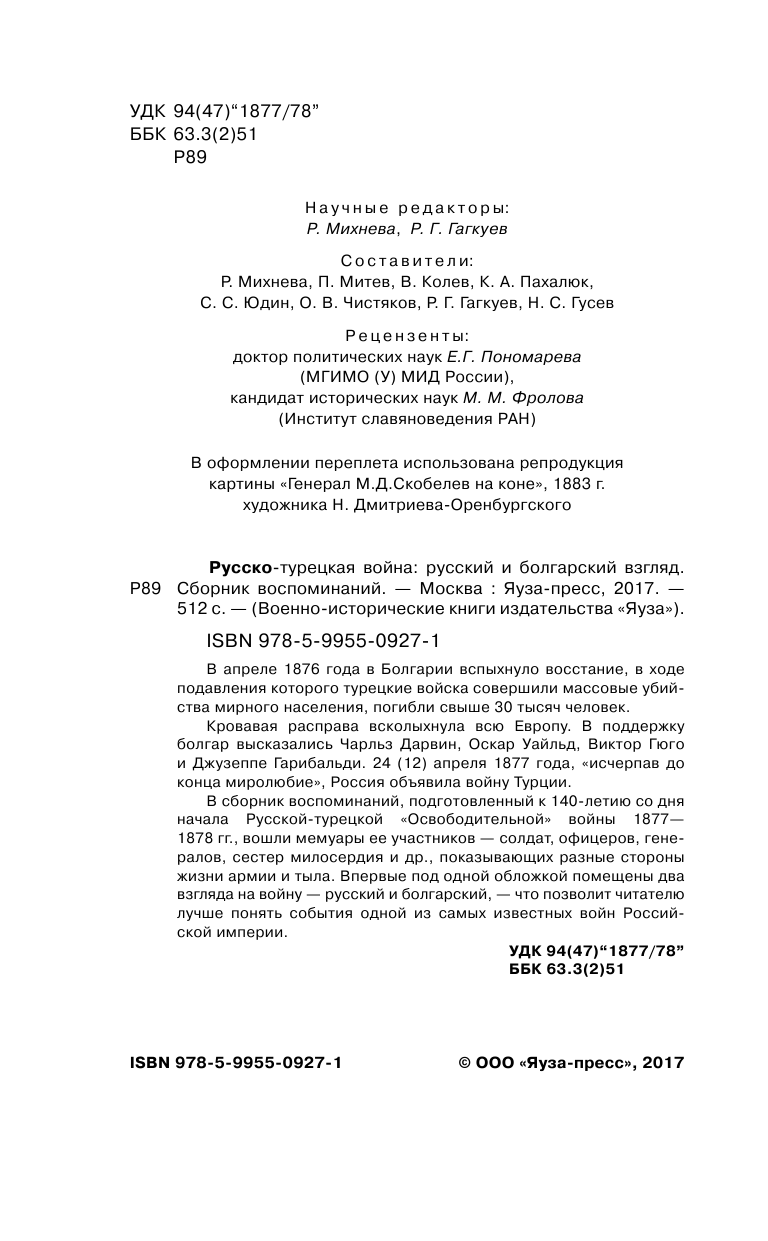 Русско-турецкая война. Русский и болгарский взгляд. Сборник воспоминаний (Добычина А.С. (переводчик), Леонтьева А.А. (переводчик), Гусев Н.С. (переводчик), Михнева Р. (составитель)); Издательство Яуза ООО, 2017
