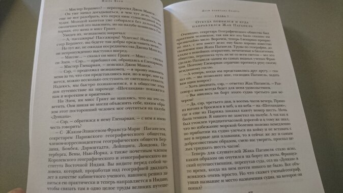 В данном издании роман приведён в переводе Бекетовой под редакцией Н.Коган, сделанной в 1955 году для выпуска собрания сочинений Жюля Верна. В книге имеются ч/б иллюстрации сделанные по обеим сторонам глянцевых вклеек на полный формат. Если бы были даны все иллюстрации Э.Риу поставил бы пять, а так только четвёрка. Но издание всё равно хорошее, если наличие всех иллюстраций не принципиально, рекомендую.