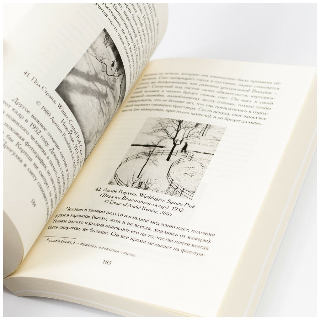 Список фотографов, чьи работы Дайер исследует, ограничивается 42 именами, среди которых особое место занимают Пол Стрэнд, Доротея Ланж, Андре Кертеш, Альфред Стиглиц, Эдвард Уэстон и Уокер Эванс. Своим нарочито субъективным подходом Дайер заранее отмел все претензии в духе "а как же А.?" или "почему так мало про Б.?", но у здравомыслящего человека таких вопросов и не возникает.