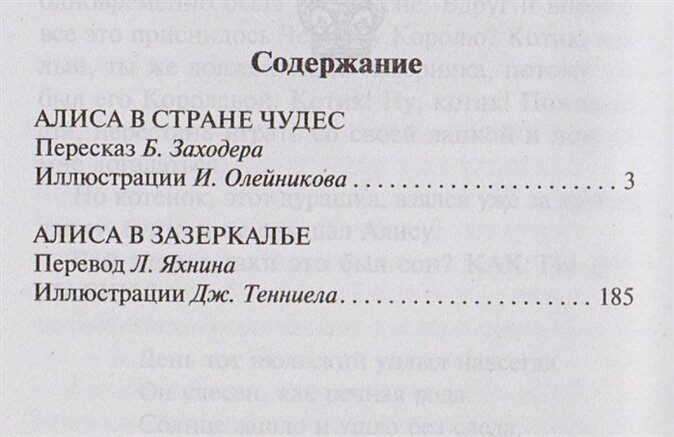| Автор(ы) | Олейников И. (иллюстратор), Заходер Борис Владимирович (автор пересказа), Тенниел Джон (иллюстратор), Кэрролл Льюис , Яхнин Леонид Львович (переводчик) |