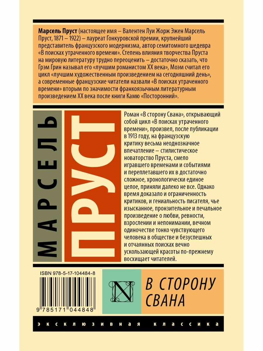 Роман "В сторону Свана", открывающий собой цикл "В поисках утраченного времени", произвел, после публикации в 1913 году, на французскую критику весьма неоднозначное впечатление, - стилистическое новаторство Пруста, смело игравшего временами и событиями и переплетавшего их в достаточно сложное хронологически единое целое, приняли далеко не все. Однако время доказало и ограниченность критиков, и гениальность писателя, чье изысканное, пронзительное и печальное произведение о любви, ревности, взрослении и непонимании, вечном одиночестве тонко чувствующего человека в обществе и безуспешных и отчаянных поисках вечно ускользающей красоты, по-прежнему восхищает читателей.