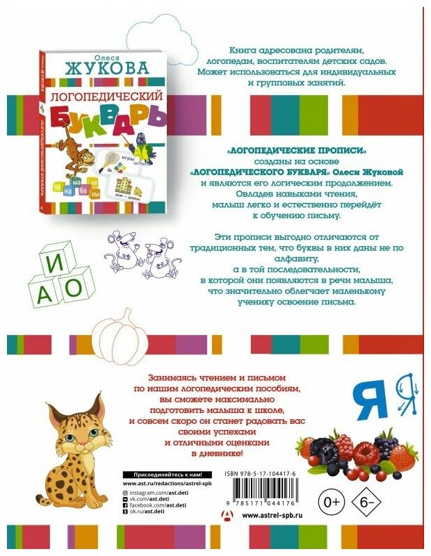 Покупали прописи в комплект к Логопедическому букварю Олеси Жуковой. Хотелось именно набор от одного автора, чтобы учиться и читать, и писать последовательно. На обложке те же персонажи, эторадует. Как и букварь, прописи хорошо продуманы с логопедической точки зрения (последовательность букв не алфавитная).