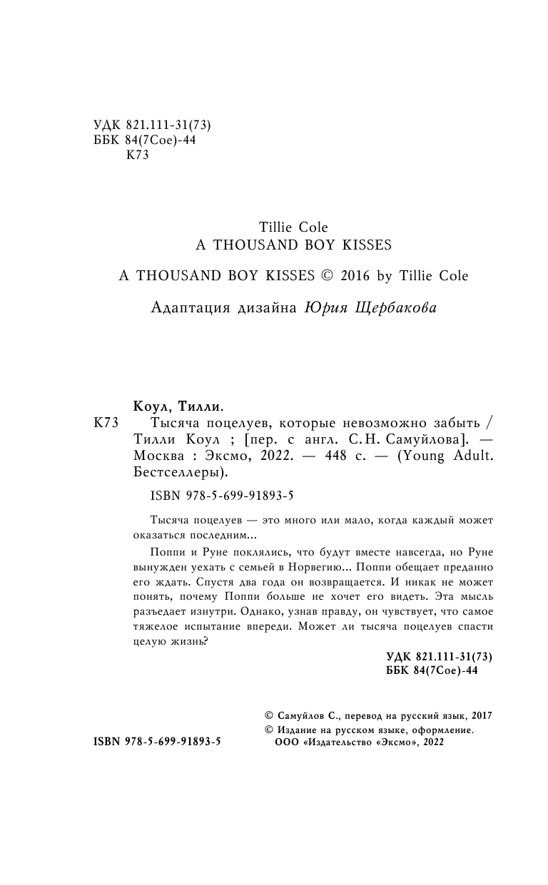 Тысяча поцелуев которые невозможно забыть (Коул Тилли, Самуйлов Сергей Николаевич (переводчик)); Эксмо, 2022