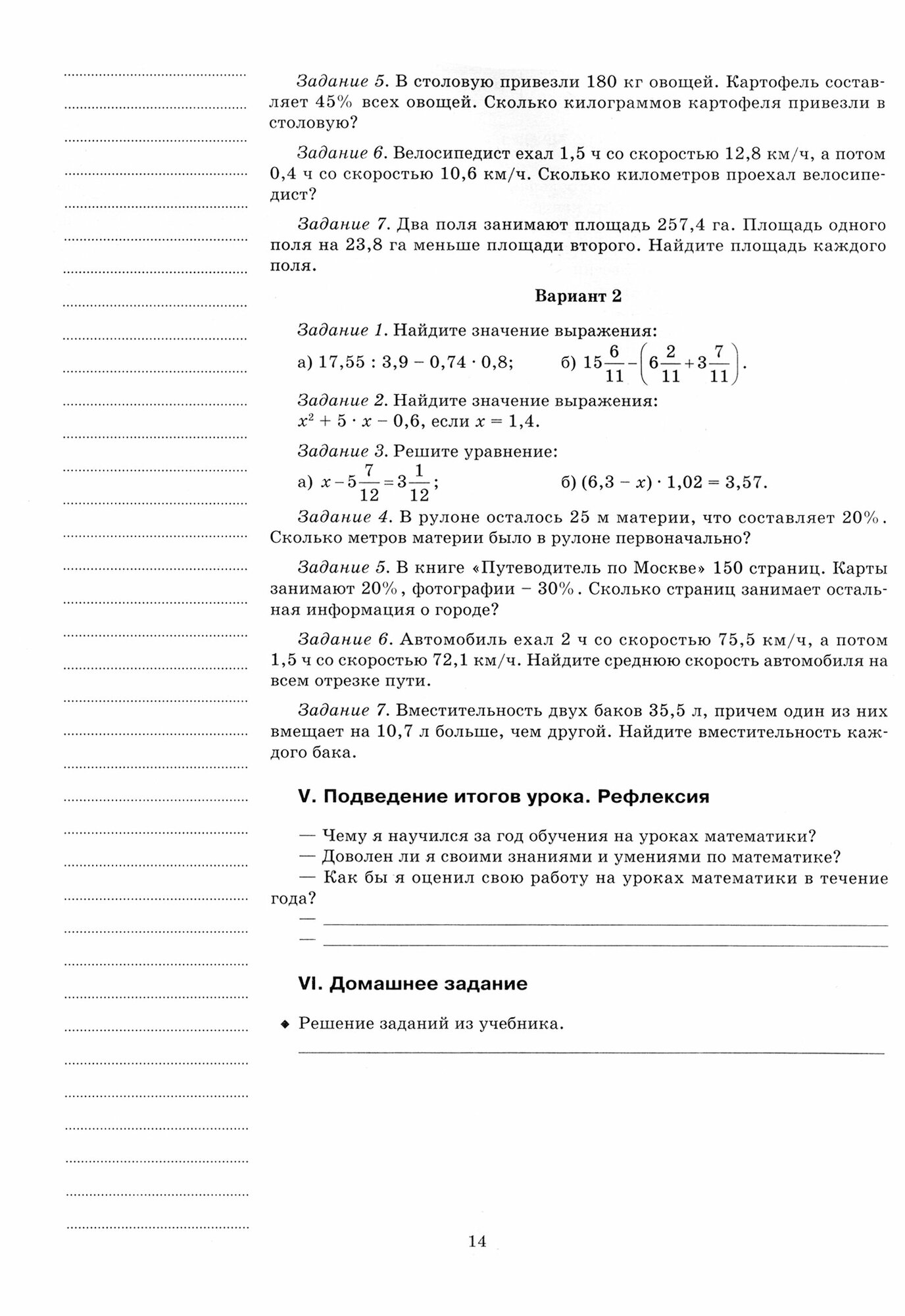 В учебно-методическом пособии приведены разработки планов-конспектов уроков курса "Математика" для учеников 6 класса (I полугодие), предложено календарно-тематическое планирование, дидактический материал. Также предусмотрено место для собственных записей учителя, что сделает разработку занятия по-настоящему авторской и сэкономит время на планирование и оформление.