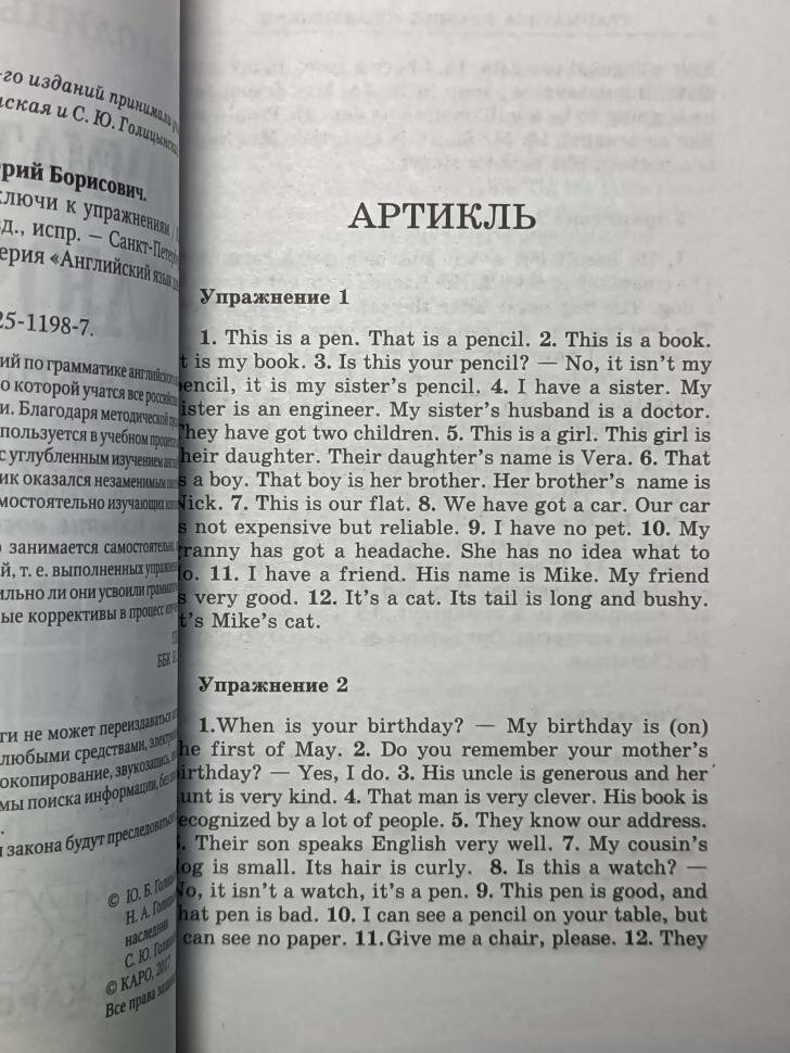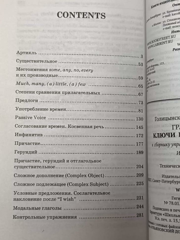 Сборник упражнений по грамматике английского языка Ю.Б. Голицынского - книга, по которой учатся все российские (и не только российские) школьники. Благодаря методической продуманности и полноте она широко используется в учебном процессе как в школах с базовым уровнем изучения английского языка, так и в школах с углубленным изучением английского языка. Кроме того, этот сборник оказался незаменимым пособием для широкого круга людей, самостоятельно изучающих или повторяющих язык. В помощь тем, кто занимается самостоятельно, предлагается полный сборник ключей, т.е. выполненных упражнений. Теперь читатели смогут проверить, правильно ли они усвоили грамматические правила, и внести необходимые коррективы в процесс изучения языка.