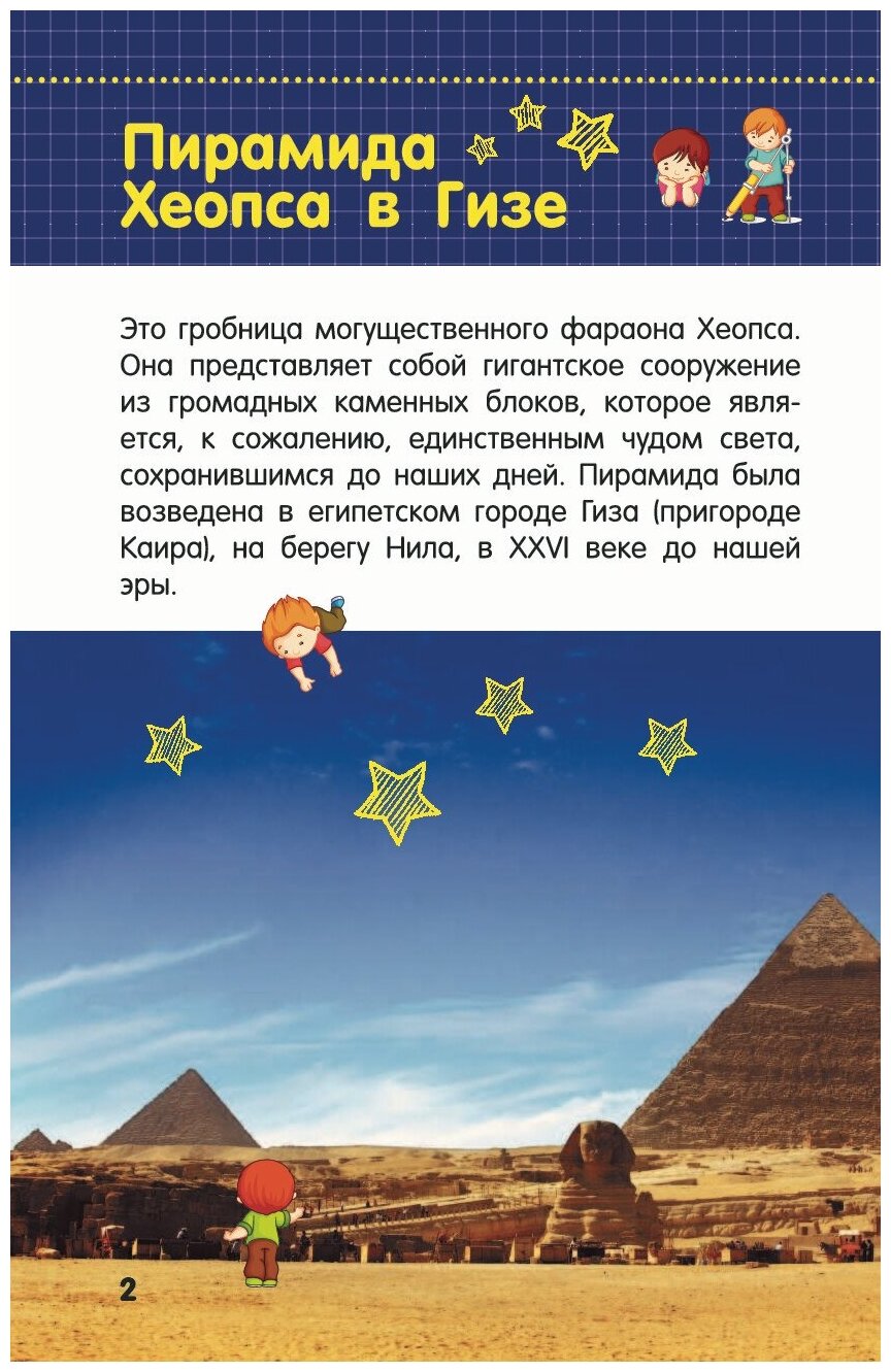 Грандиозные творения рук человека, ставшие мировым культурным наследием, никогда не перестанут поражать своим величием. Секреты великой семерки чудес света и современных знаменитых сооружений вызывают интерес до сих пор. Наверное, именно поэтому каждому хотелось бы заглянуть в далекое прошлое и увидеть, кем и как создавались легендарные архитектурные шедевры человечества. Разобраться в таком нелегком вопросе поможет эта занимательная книга. Просто, но в то же время увлекательно она поделится множеством невероятных фактов из истории чудес света, о которых не говорят даже в школе. Для младшего школьного возраста.
