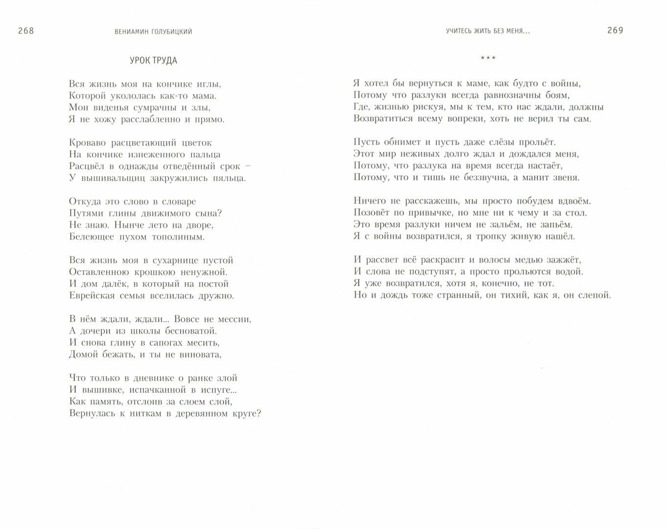 Всякая настоящая поэзия разнообразна и современна. Возможно, именно поэтому стихи Вениамина Голубицкого не только востребованы разного рода изданиями , среди которых «Литературная газета», «Комсомольская правда», журналы «Юность» и «Урал», но и положены на музыку и перепеты самыми популярными российскими исполнителями.
