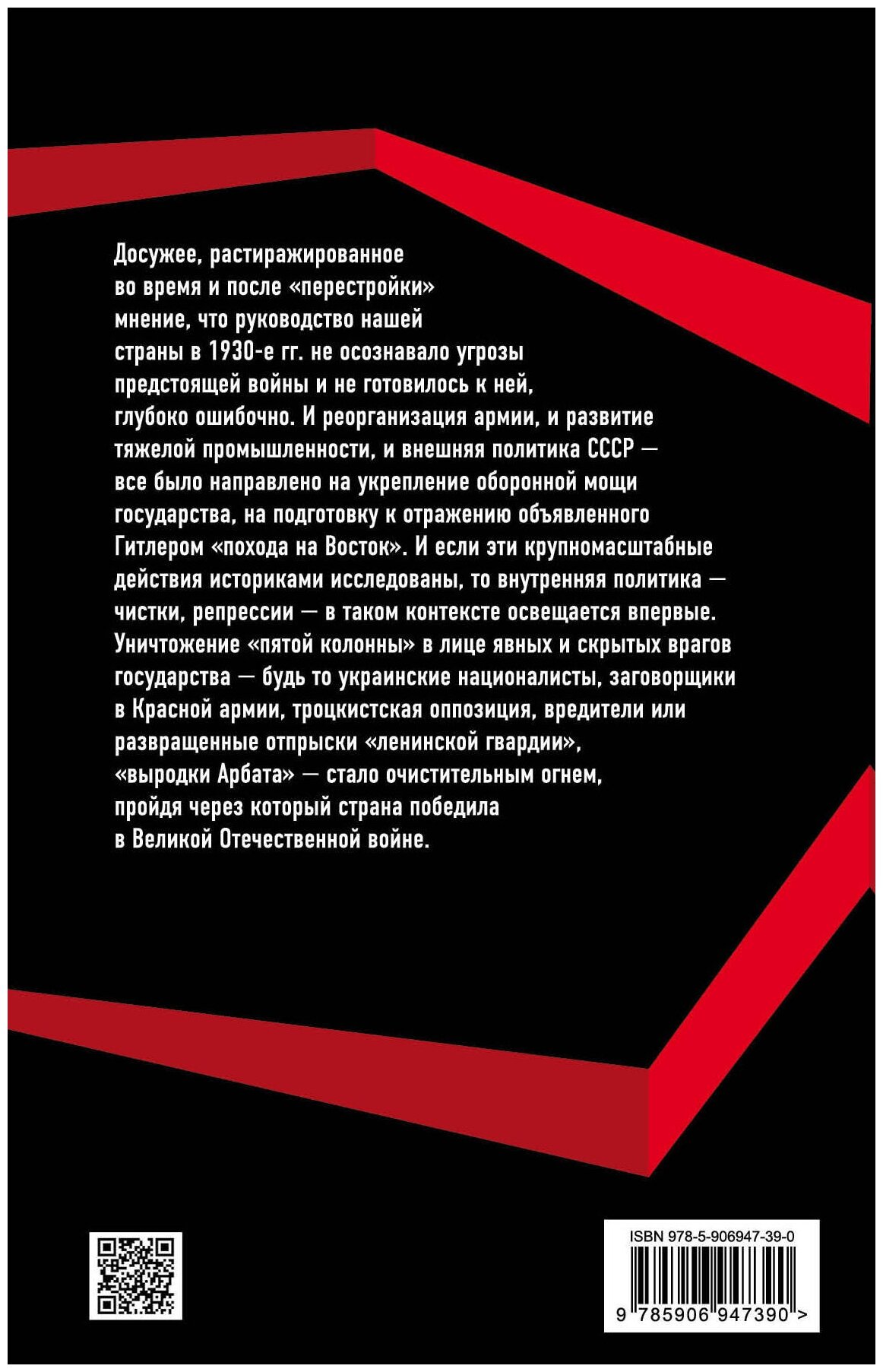 Досужее, растиражированное во время и после "перестройки" мнение, что руководство нашей страны в 1930-е гг. не осознавало угрозы предстоящей войны и не готовилось к ней, глубоко ошибочно. И реорганизация армии, и развитие тяжёлой промышленности, и внешняя политика СССР - всё было направлено на укрепление оборонной мощи государства, на подготовку к отражению объявленного Гитлером "похода на Восток". И если эти крупномасштабные действия историками исследованы, то внутренняя политика - чистки, репрессии - в таком контексте освещается впервые.