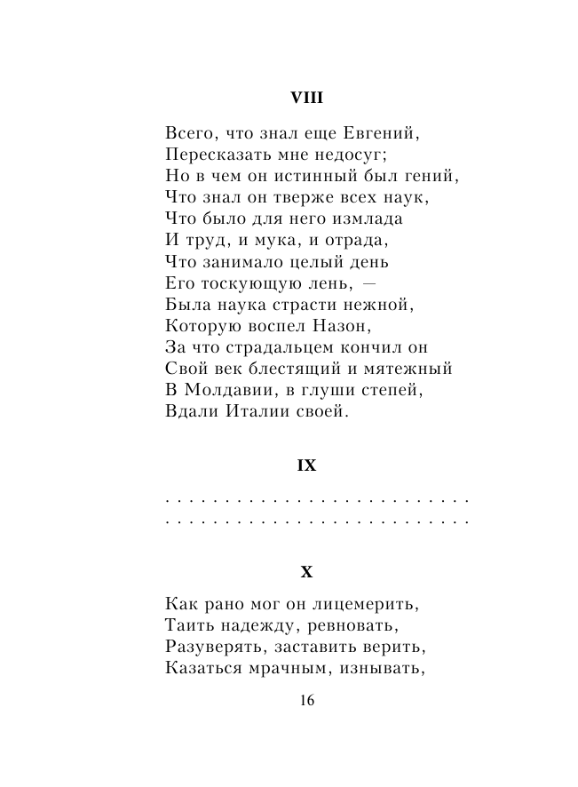 Понятно, что рассказывать о содержании нет смысла, все здесь люди грамотные и образованные, знают, кто такой Евгений Онегин. Я не про содержание. Я про полиграфию. Давно не попадала мне в руки такая "уютная" книжка. У нее очень удобный формат, позволяющий гармонично держать в ладонях. Обложка - восторг! Невероятно приятная на ощупь. Бумага матовая, не чисто белая, но текст пропечатан очень четко, комфортным для зрения шрифтом, как по читаемости, так и по размеру. Оформление книги элегантное, утонченное, облагороженное щедрой позолотой. Просто душа радуется, когда видишь достойное сочетание внешнего вида и содержания. Думаю приобрести несколько книг этой серии, в том числе и на подарки друзьям.