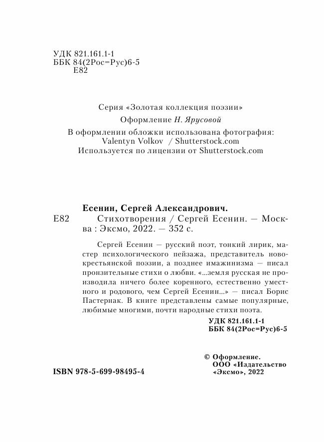 Книга: Стихотворения (Есенин Сергей Александрович); ООО "Издательство "Эксмо", 2020