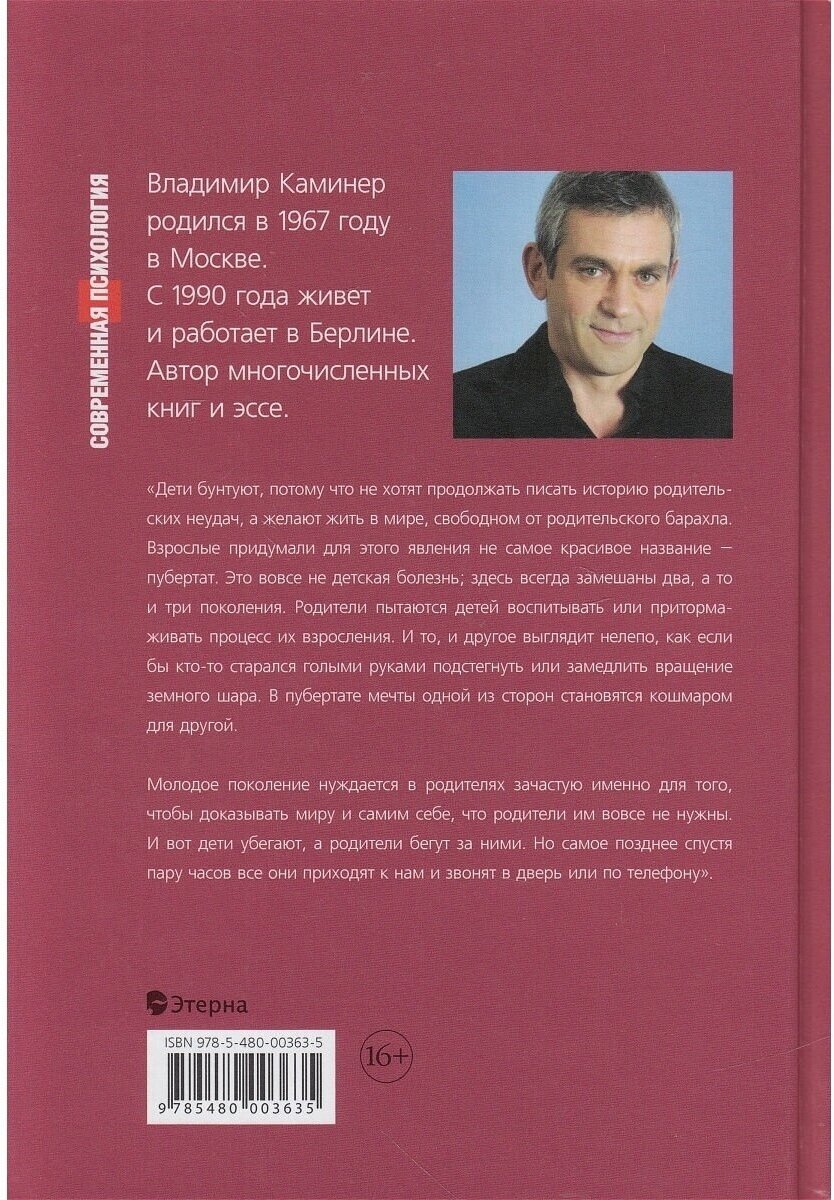 В. Каминер не психолог, он известный в Германии писатель родом из СССР. За плечами советское детство и советская семья и школа. Отец двоих детей, которые родились уже в Германии. Мы не случайно включили эту художественную книгу в серию по психологии. Остроумные и точные наблюдения за современными подростками с необычного ракурса - изнутри советского прошлого и европейского настоящего - обладают выраженным психотерапевтическим эффектом. Вы поймете, что не сойти с ума, воспитывая современного подростка, абсолютно реально.