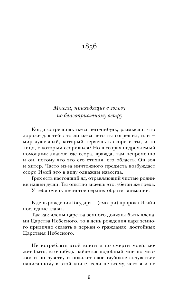 Письменное наследие праведного Иоанна Кронштадтского является одной из основополагающих книг православного вероучения. Эта книга для всех времен останется живым словом, как пример благодатного озарения души в минуты глубокого погружения в себя, особенно во время молитвы. Эта книга издана в строго классической манере, как и все книги серии «Библиотека всемирной литературы». Но в данном издании очень интересно продумана структура содержания (нумерация размышлений и алфавитный указатель). Особенно следует выделить алфавитный указатель. С его помощью можно легко найти разнообразные ответы на одну и ту же мысль по номеру, так как благодатные чувства и мысли записывались отцом Иоанном Кронштадтским в разные года, и эти записи (каждая под своим номером) составили содержание книги. Так что можно углубиться в одно из размышлений, и легко перескакивать с помощью указателя на нужные страницы. Полезность этой книги неоспорима, поэтому только 5+ баллов.