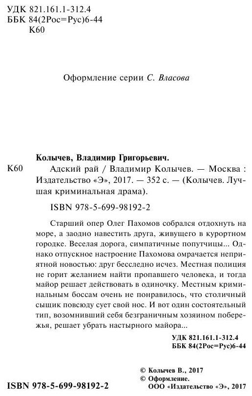 Книга: Адский рай (Владимир Григорьевич Колычев); Эксмо, 2017