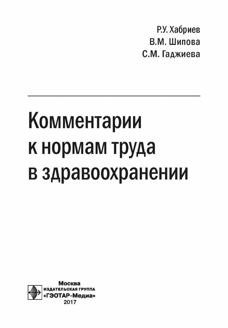 Комментарии к нормам труда в здравоохранении (Шипова Валентина Михайловна, Хабриев Рамил Усманович, Гаджиева Саида Мердановна); ГЭОТАР-Медиа, 2017