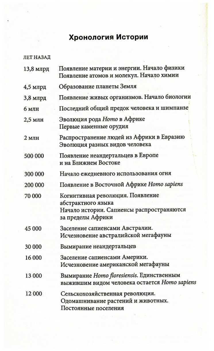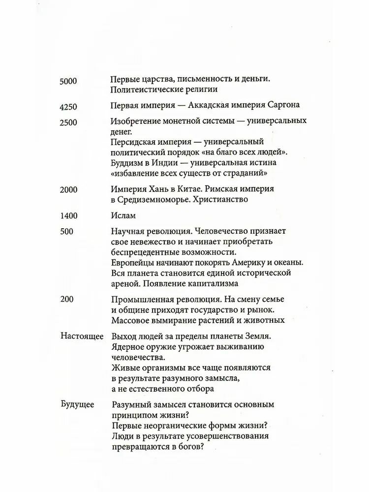 Сто тысяч лет назад Homo sapiens был одним из, как минимум, шести видов человека, живших на этой планете, - ничем не примечательным животным, которое играло в экосистеме роль не большую, чем гориллы, светлячки или медузы. Но около семидесяти тысяч лет назад загадочное изменение когнитивных способностей Homo sapiens превратило его в хозяина планеты и кошмар экосистемы. Как человек разумный сумел покорить мир? Что стало с другими видами человека? Когда и почему появились деньги, государства и религия? Как возникали и рушились империи? Почему почти все общества ставили женщин ниже мужчин? Как наука и капитализм стали господствующими вероучениями современной эры? Становились ли люди с течением времени счастливее? Какое будущее нас ожидает?
