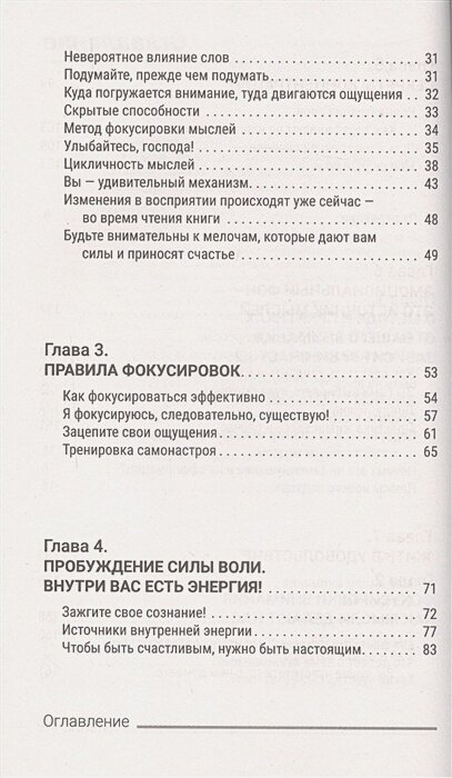 В книге даны фокусировки (мыслительные упражнения), работая с которыми, вы настроитесь на позитивную волну, которая обязательно приведет к желанным результатам.