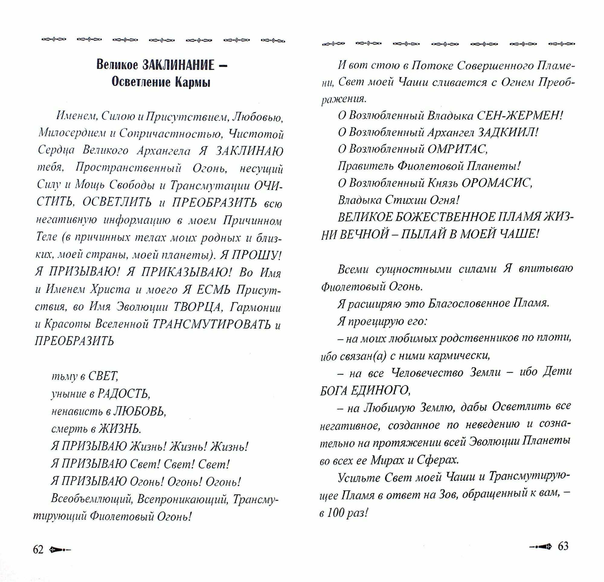 "Сборник покаяний и молитв кармического очищения" - в книге приводятся сознательные призывы к Фиолетовому Трансмутирующему Пламени, очищающему наши тела от всех инволюционных накоплений, т.к. Фиолетовое Пламя - это мощное средство защиты и очищения от кармических структур. В сборнике исключительно молитвы, обращения, веления. Добавлю оглавление и несколько молитв в просмотру.