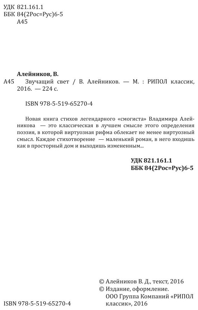 Сервис сравнения цен СкидкаГИД предлагает сравнить цены на товар «Книга: Звучащий свет (Алейников Владимир Дмитриевич); Рипол-Классик, 2016»