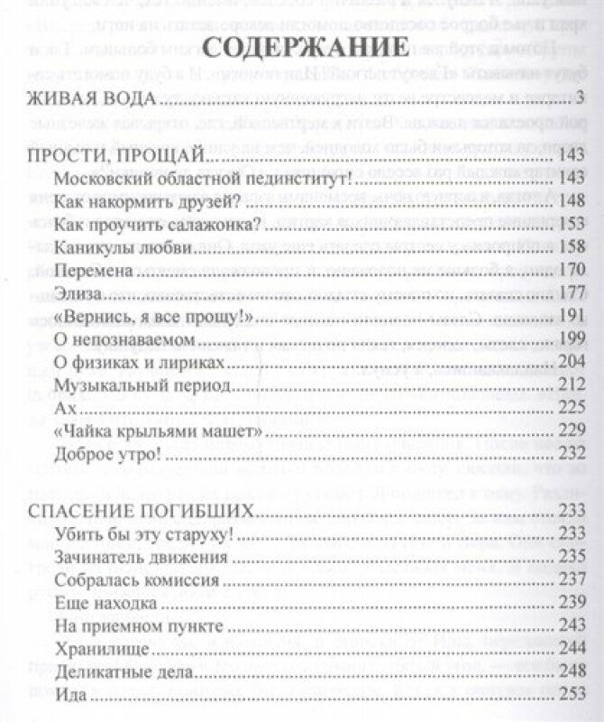 В книгу признанного классика русской прозы Владимира Крупина вошли: его знаменитая повесть "Живая вода", по которой вскоре был снят кинофильм "Сам я - вятский уроженец" (в главных ролях - Михаил Ульянов, Евгений Лебедев, Сергей Гармаш; режиссер Виталий Кольцов), а также блистательно написанная повесть о московских студентах 1960-х годов "Прости, прощай..." и роман "Спасение погибших" - серьезное и одновременно веселое исследование нравственной атмосферы писательского мира того же времени. Тонкий, исключительно крупинский юмор, образность описаний, живописный язык радуют и восхищают.