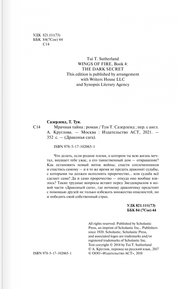 Драконья сага. Мрачная тайна (Сазерленд Туи Т.); ООО "Издательство Астрель", 2021