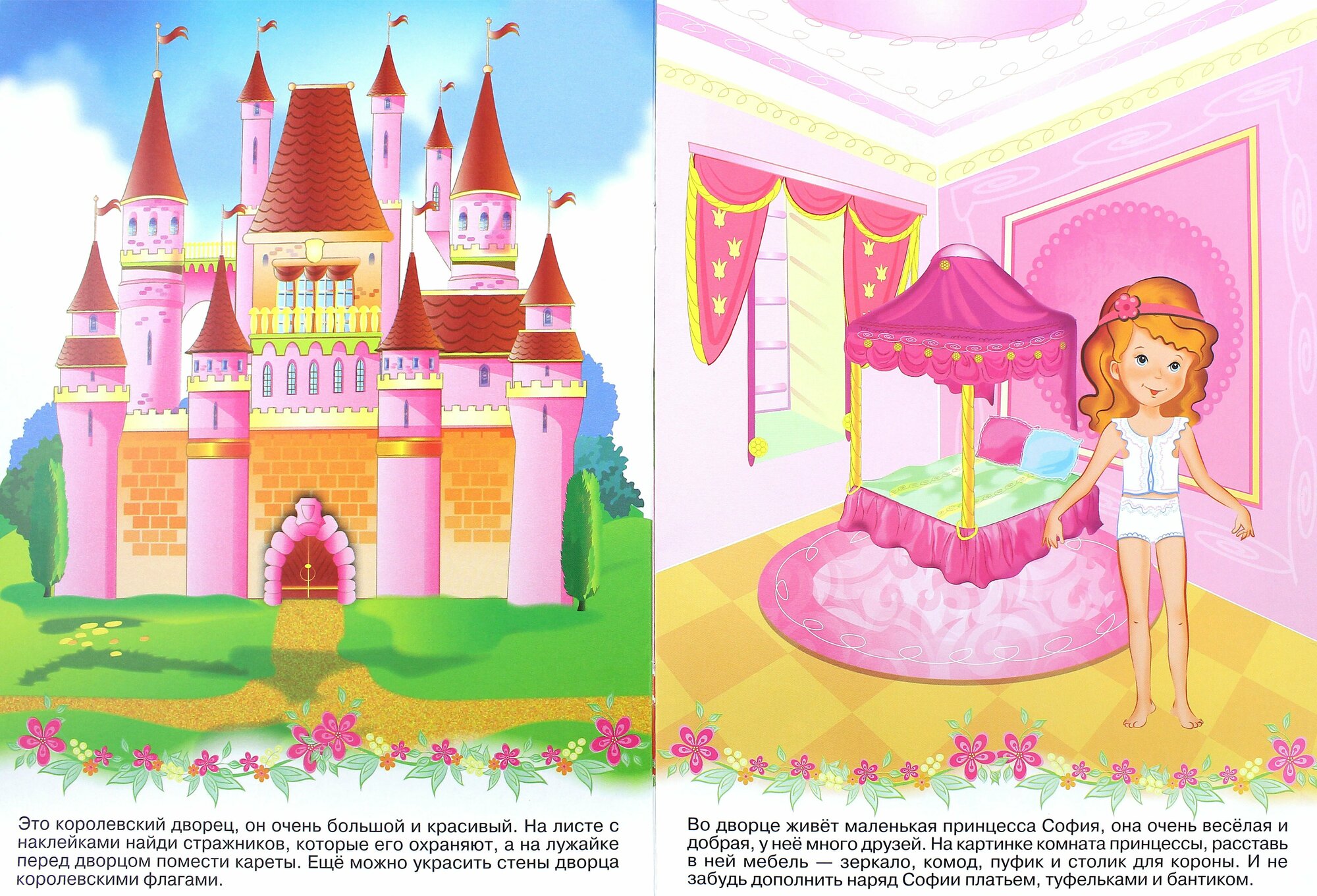 Внутри книжки лист с наклейками, с их помощью можно дополнить каждую картинку деталями, предметами или персонажами - надо только проявить фантазию.