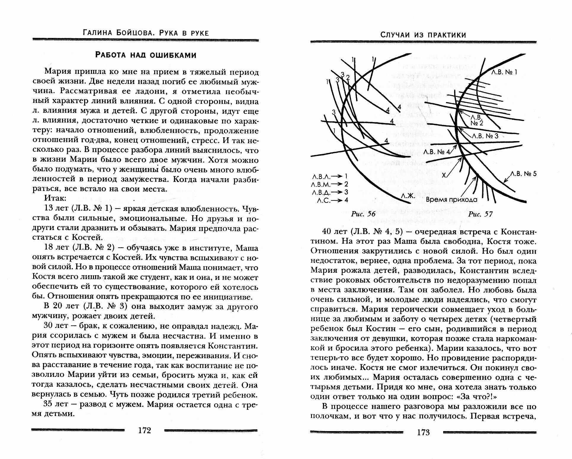 Книга о хирологии, вроде бы.... Но, скорее, это книга о богатом внутреннем мире автора и его практике работы с клиентами... Много "случаев из практики", по одному сценарию: автор выясняет "болевую точку", надавливает на нее и рыдает вместе с клиентом. И считает это "прорывом", после которого начнется изменение. В конце книги включен раздел "Письма". Это просто поток сознания... не имеющий отношения ни к хирологии, ни к чему вообще. Скорее, меня именно этот раздел возмутил. Вот мне это совершенно не интересно в книге о хирологии..