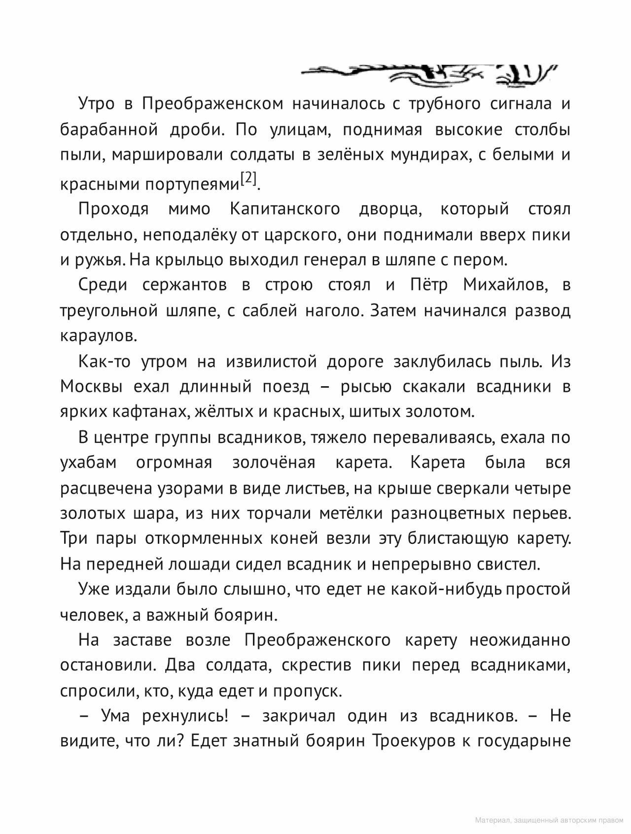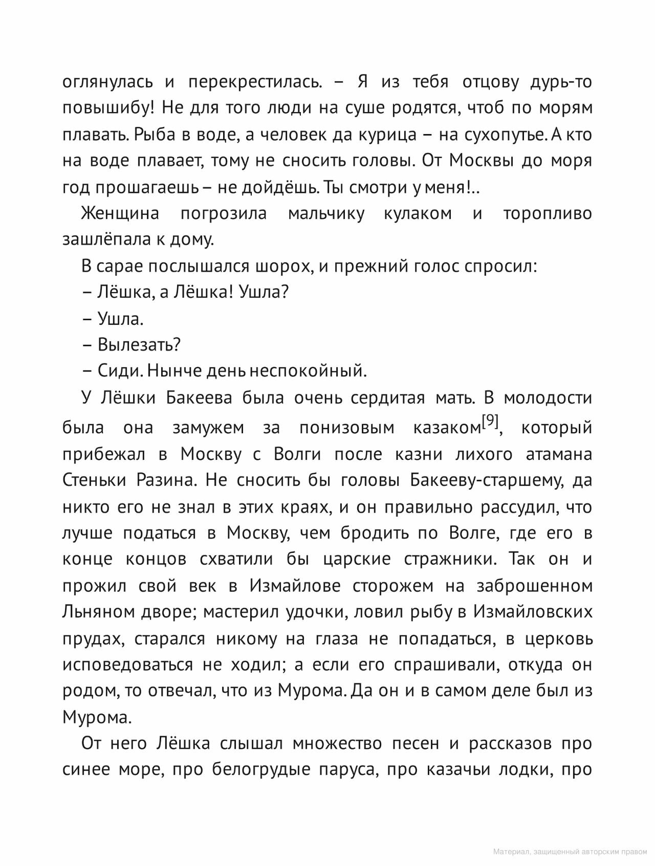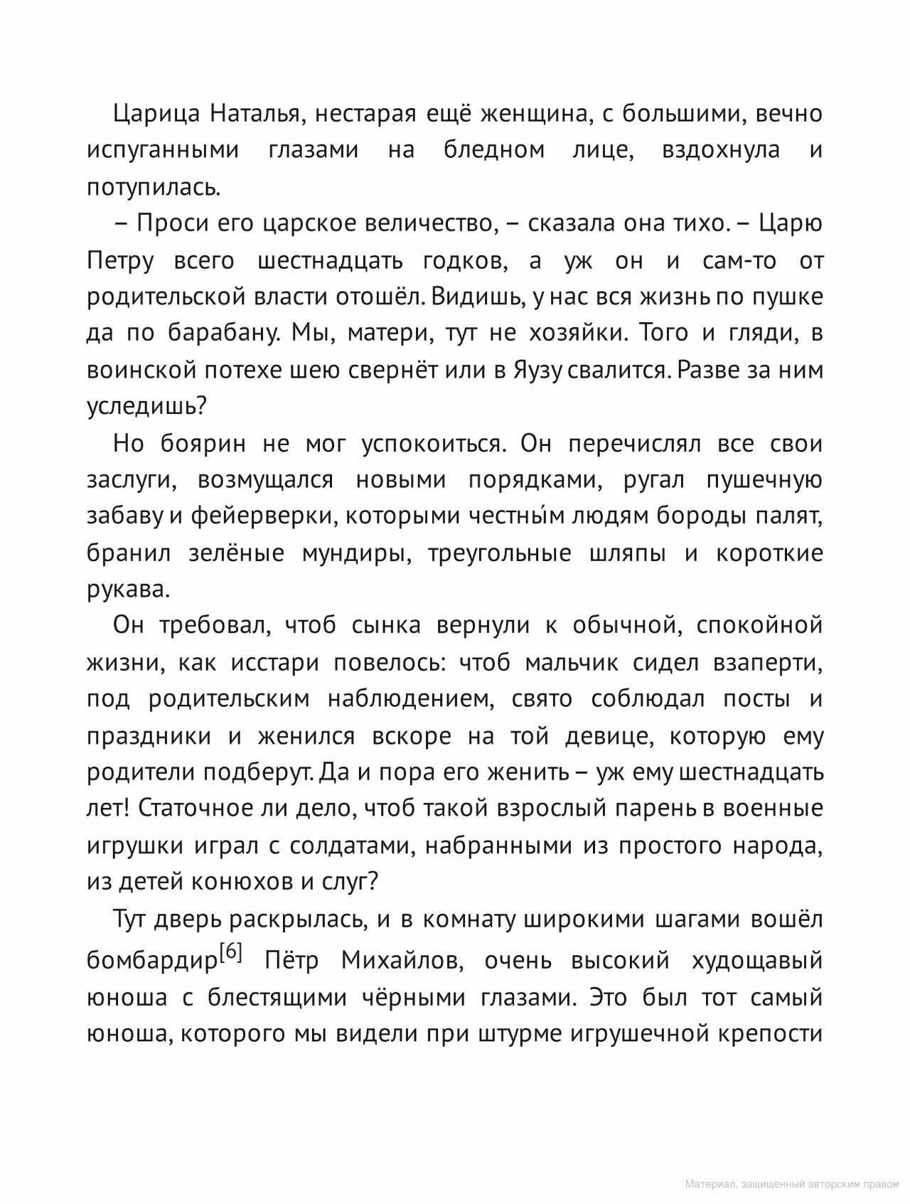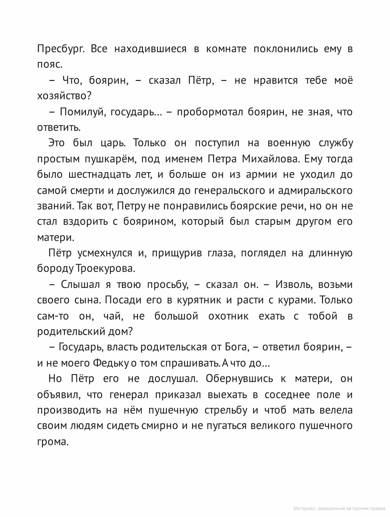 В повести "Дедушка русского флота" рассказывается о любознательном юноше, будущем царе и строителе военно-морского флота России Петре I, отыскавшем в "сухопутной" Москве старый ботик и впервые поплывшем на этой незатейливой лодочке по реке Яузе.
