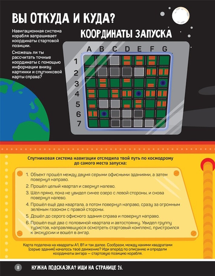Вся серия хорошая! Тетрадки недорогие, при этом в них много заданий с общим сюжетом. В этом выпуске читатель случайно попадает на Байконур и летит в одиночное путешествие на луну!