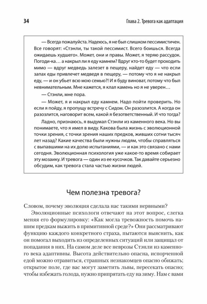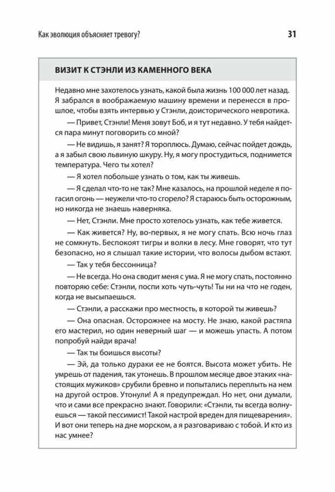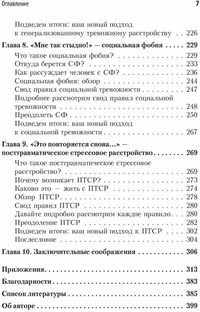 Купила эту книгу в Лабиринте по рекомендации подруги. 400 страниц в новой книге врача - когнитивного терапевта Роберта Лихи. Он популярнрно объясняет природу страха, который мешает людям жить. Даёт практические советы, как остановить фобии. Автор приводит правила, которые необходимы в жизни, основываясь на своём большом (25 летнем) врачебном опыте. В таблицах представлена техника самопомощи. Кстати, всё доступно. Автор в книге предлагает каждому рецепты для того, чтобы быть умиротворённым, принимать себя и радоваться тому, что приносит каждый день нашей жизни. Читаешь и делаешь открытия.Лучше читать с карандашом, делая отметки.