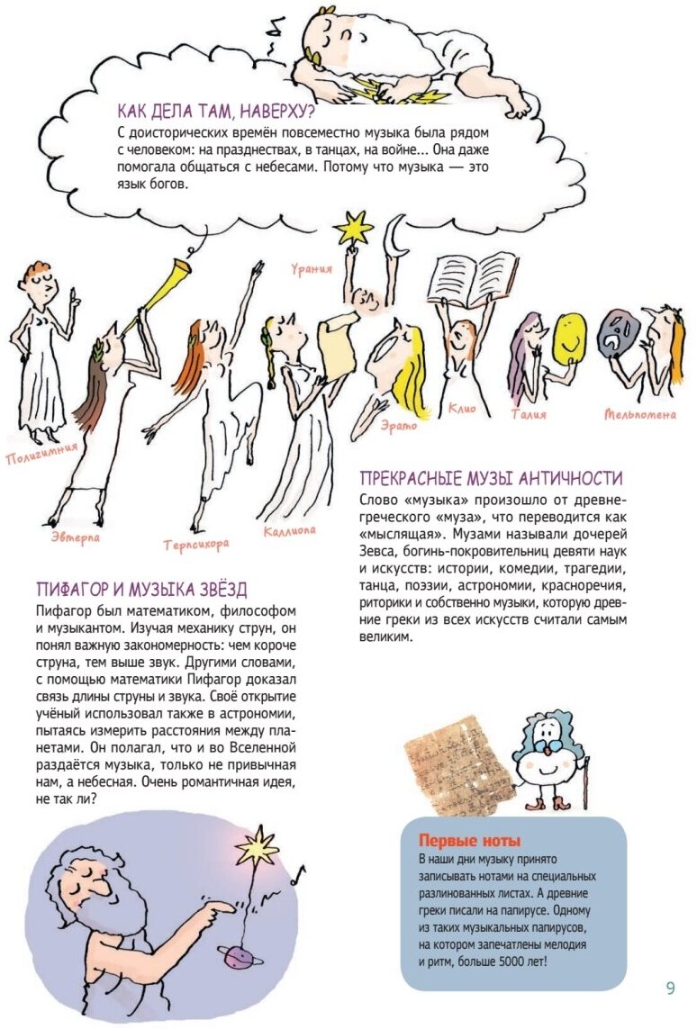 В книге даются учёные ответы на детские вопросы о музыке и её природе. Ответы эти простые и изложенные увлекательным доступным языком. История музыки с самых древних времён, описание музыкальных стилей и инструментов, интересные факты о певцах и композиторах. Думаю, подростка должны увлечь тексты про рэп и джаз, любопытные и самые частые детские вопросы, вроде зачем нужен дирижёр и для чего вообще нужна музыка.