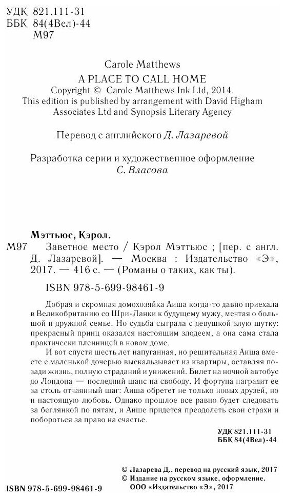 Книга: Заветное место (Кэрол Мэттьюс); Эксмо, Редакция 1, 2017