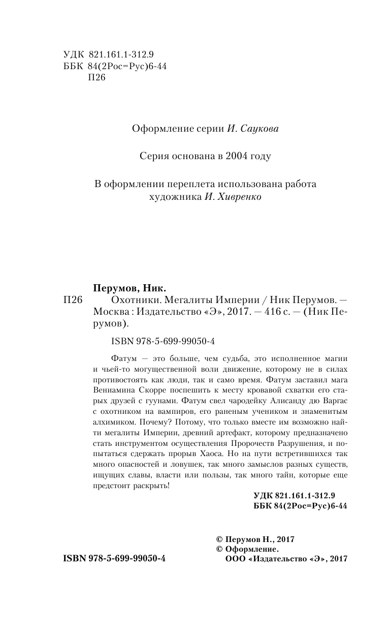 Охотники. Мегалиты Империи (Ник Перумов); Автор, 2017