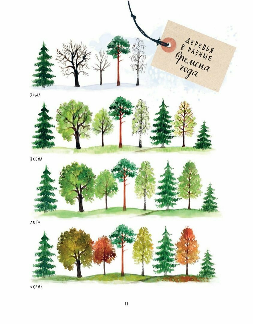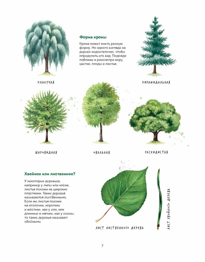 На подробных рисунках можно рассмотреть форму кроны и отдельного листа. Увидеть, как выглядят цветы, плоды и семена каждого дерева, узнать много интересных историй, связанных с этими деревьями.